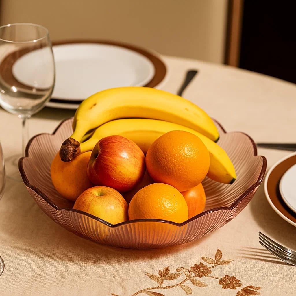 La bandeja decorativa de 815 ml en vidrio con diseño floral texturizado rosado es una pieza elegante y versátil que realza cualquier espacio. Su forma inspirada en los pétalos de una flor y su acabado translúcido aportan un toque romántico y moderno a la vez, perfecta para decorar mesas, baños o tocadores con estilo.