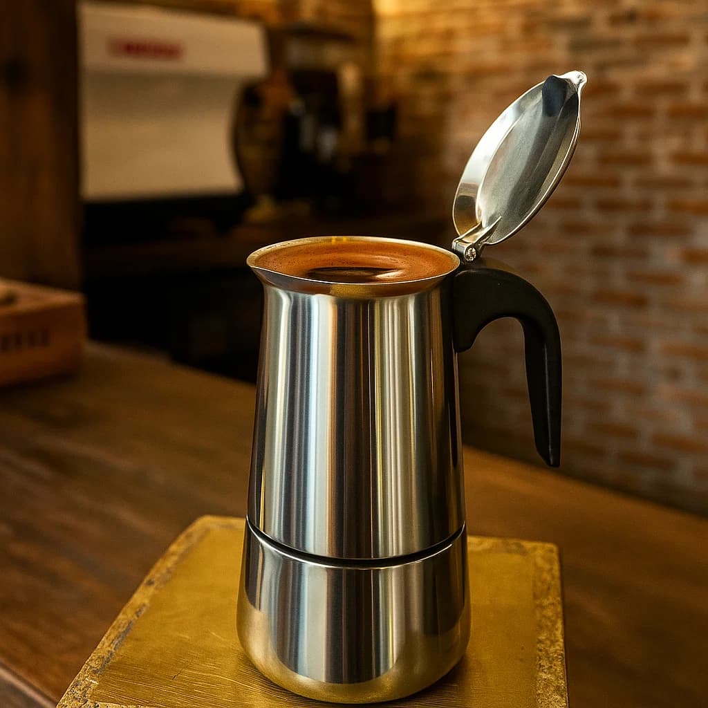 Disfruta de un café estilo espresso en casa con esta cafetera de acero quirúrgico: elegante, duradera y lista para transformar tu momento del café.