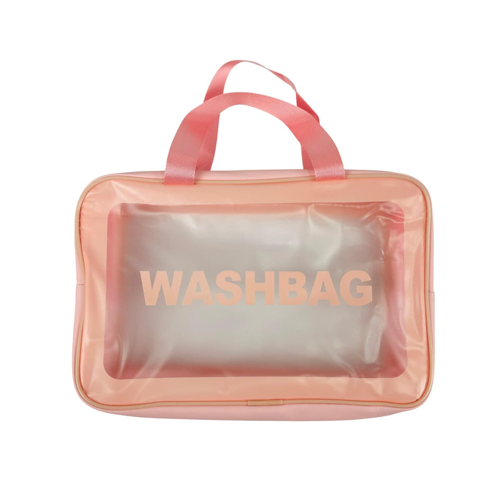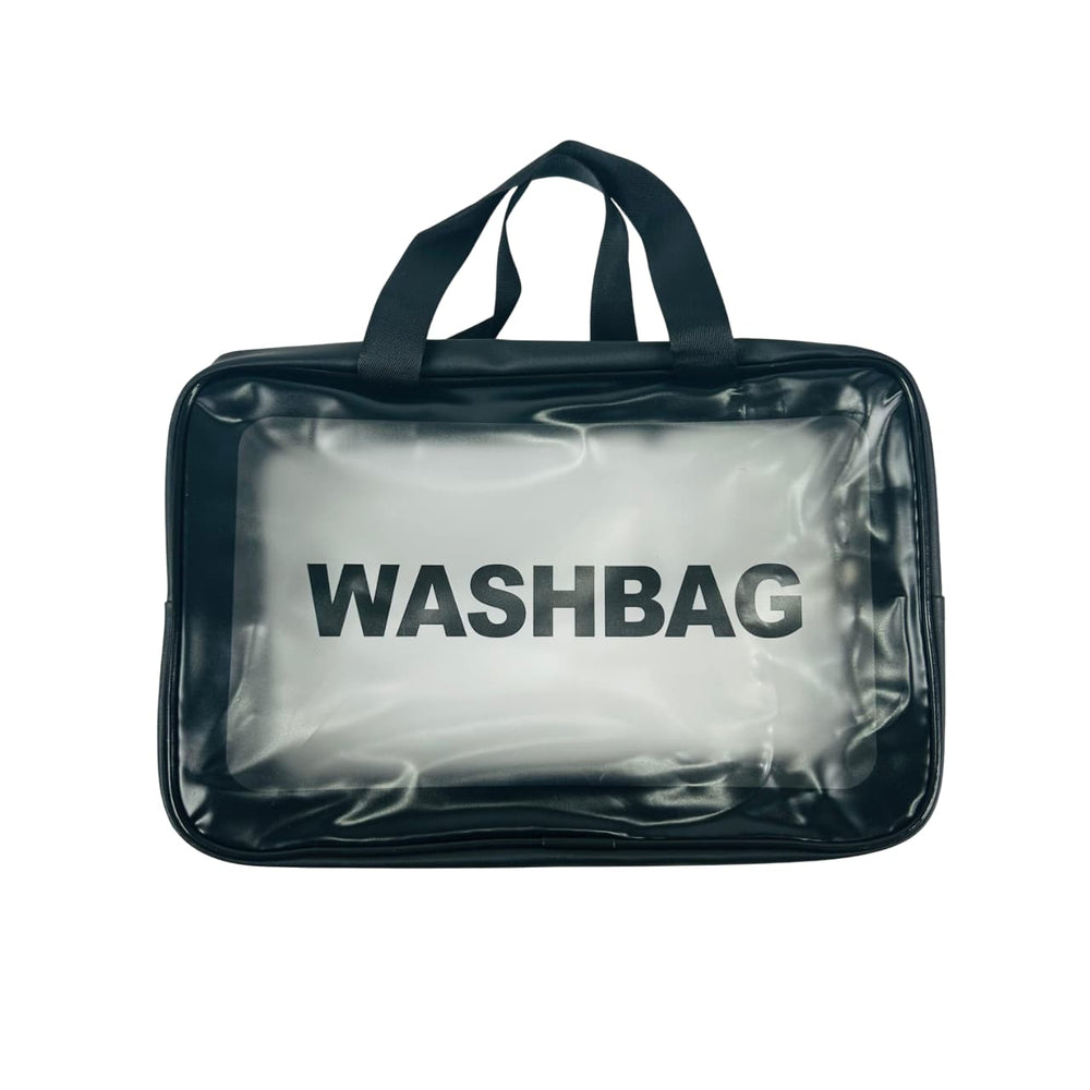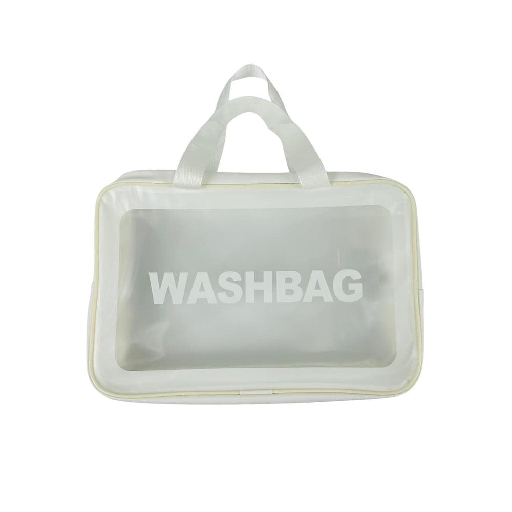 Práctica y moderna cosmetiquera WASHBAG, ideal para llevar tus artículos de higiene, maquillaje o accesorios de forma segura y organizada. Su diseño transparente con asas facilita el acceso y la visibilidad de tus pertenencias.