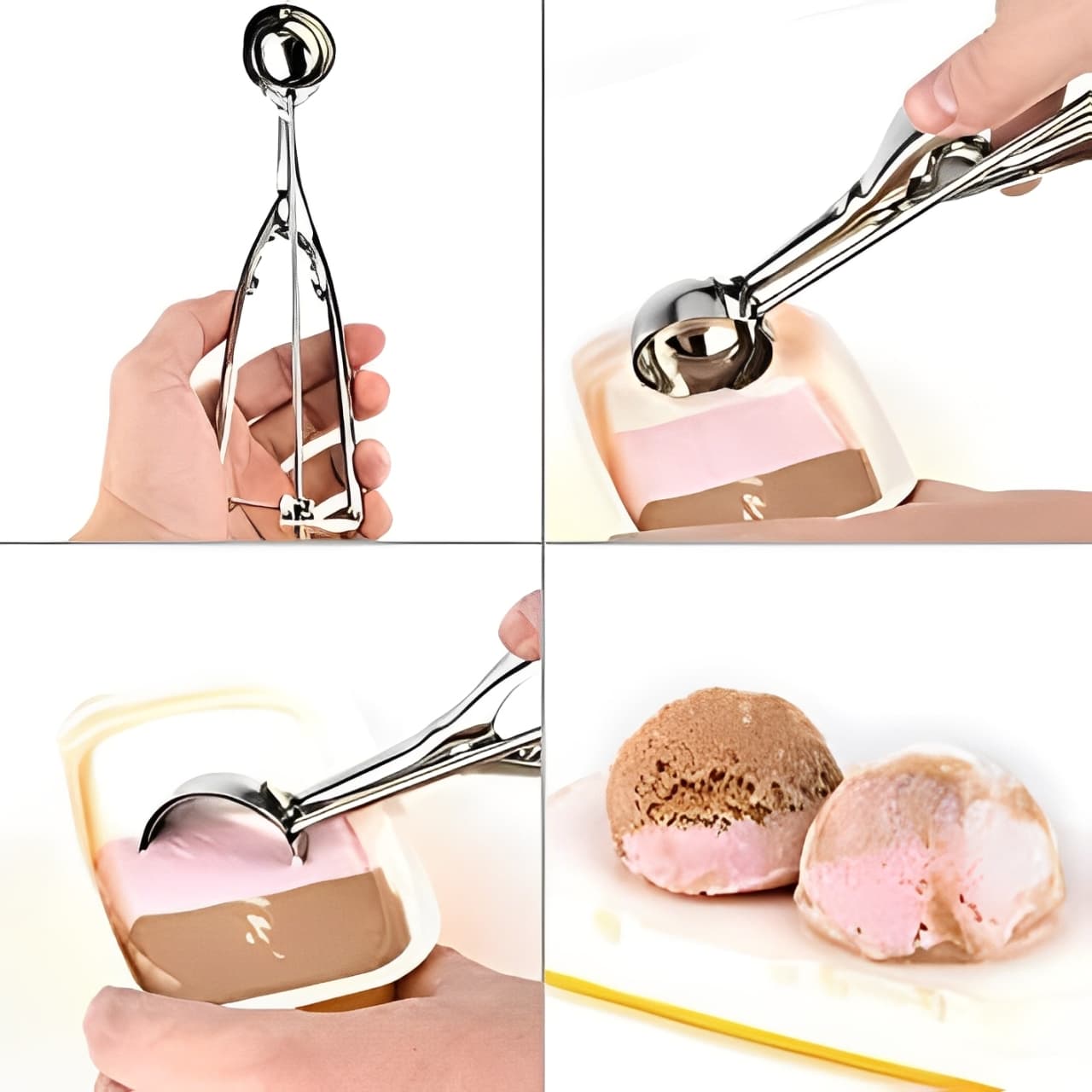 La Cuchara para Helado de 21 cm en acero inoxidable es el utensilio perfecto para servir porciones uniformes con facilidad y estilo. Gracias a su sistema de palanca incorporado, permite una liberación rápida y limpia del contenido.