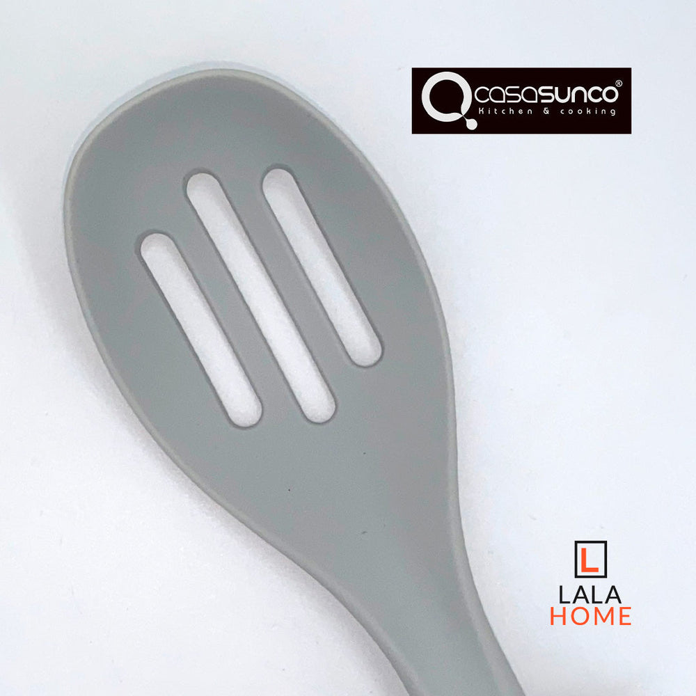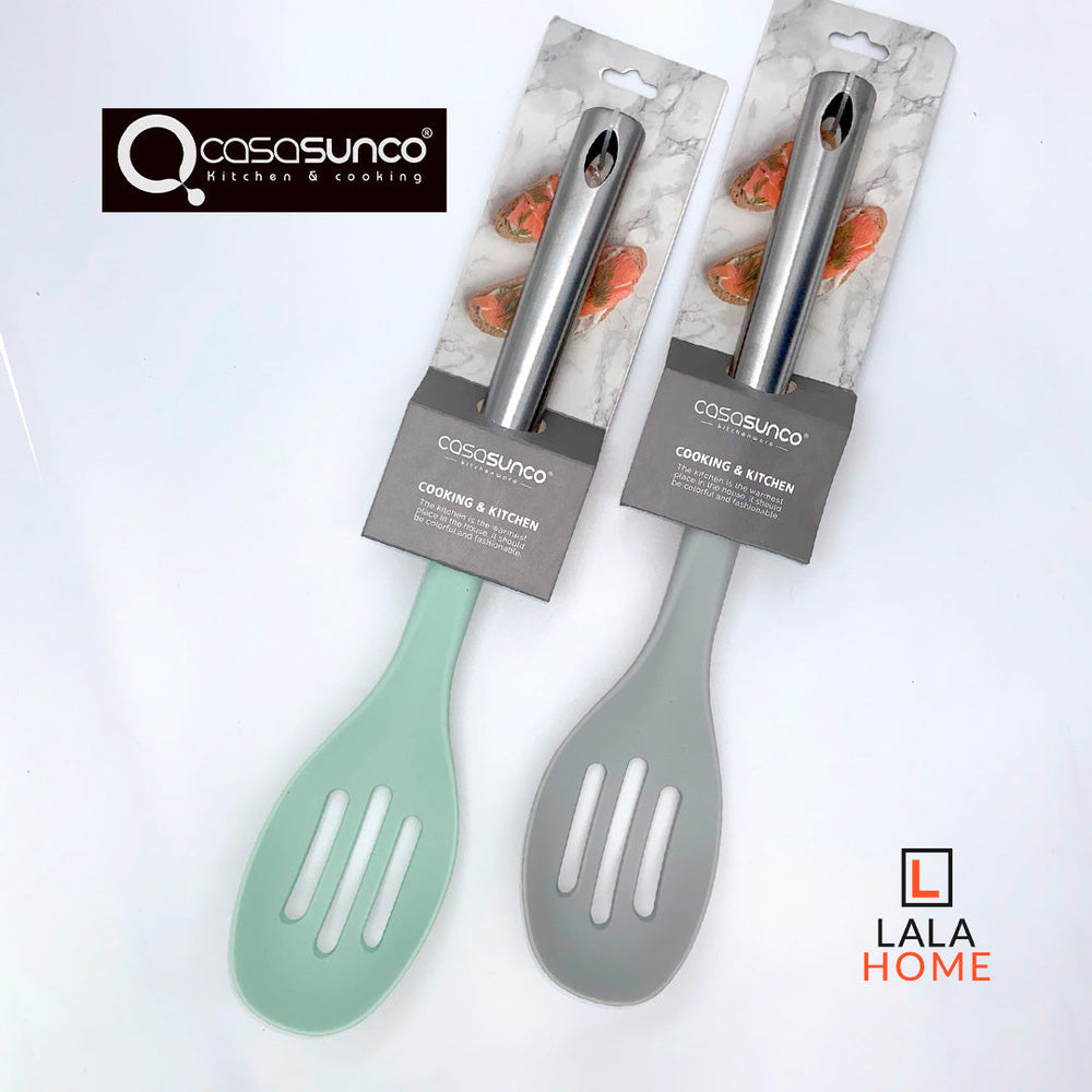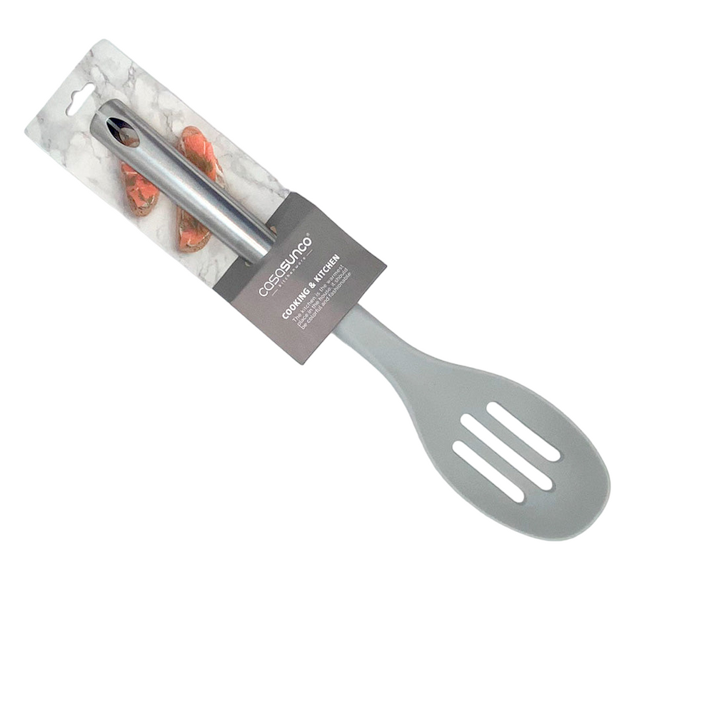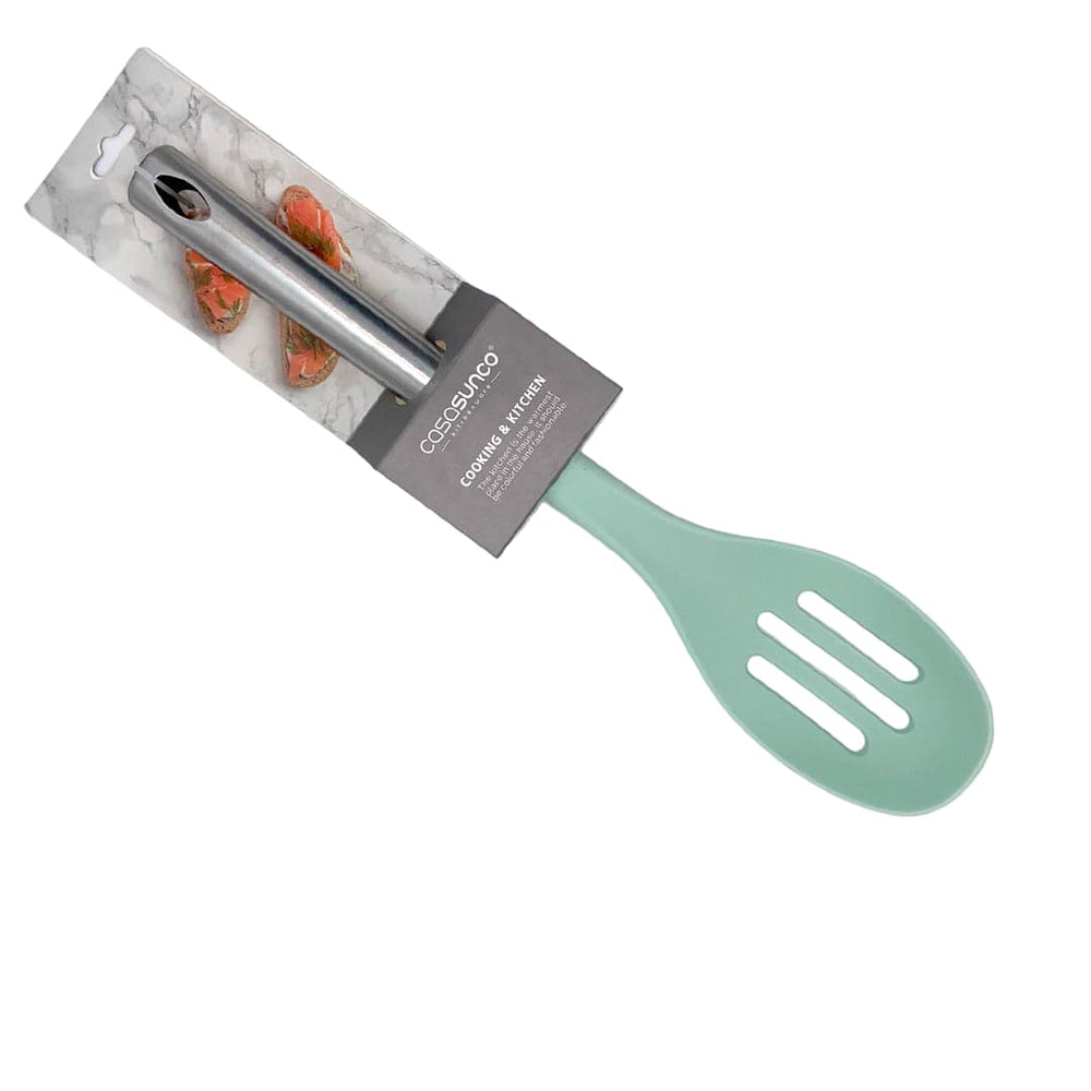 Cuchara ranurada de cocina es una herramienta esencial en la cocina, diseñada para manipular y voltear alimentos de manera eficiente durante la cocción. Está fabricada comúnmente en acero inoxidable, plástico resistente o silicona de grado alimenticio, y su diseño varía según su uso específico.
