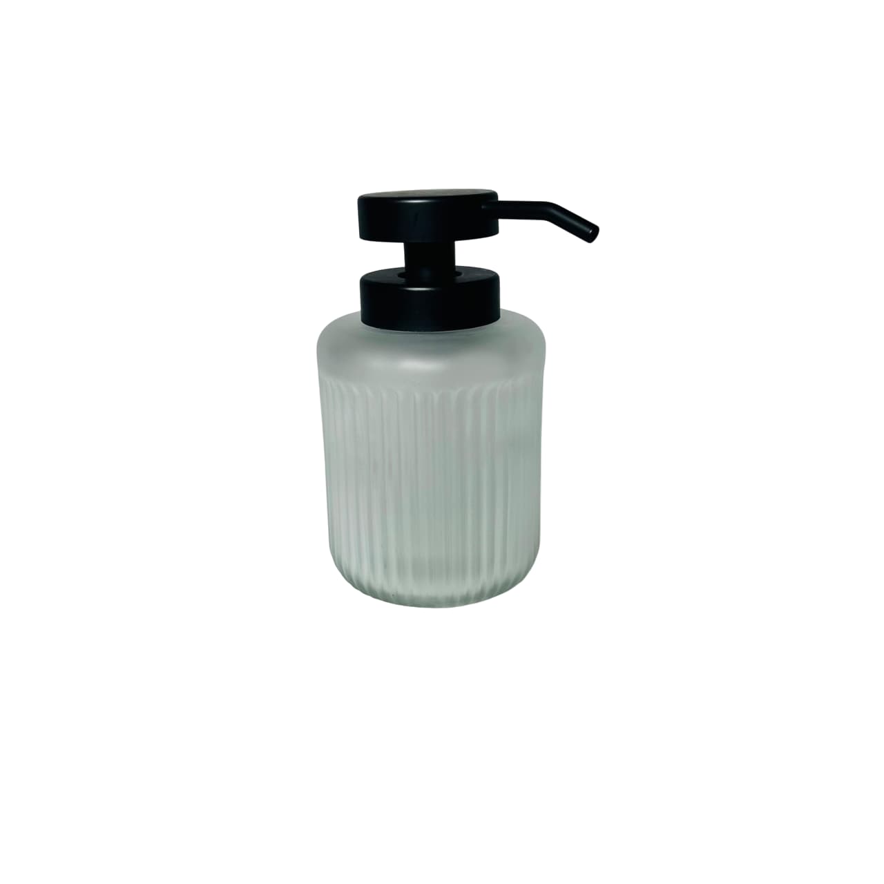 Complementa tu espacio con este elegante dispensador de jabón en vidrio blanco escarchado con diseño de líneas verticales. Perfecto para darle un toque moderno y limpio a tu baño o cocina.