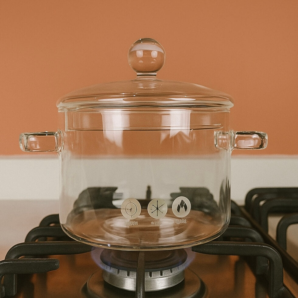 Olla En Vidrio Borosilicato 1500ml Con Orejas Y Tapa