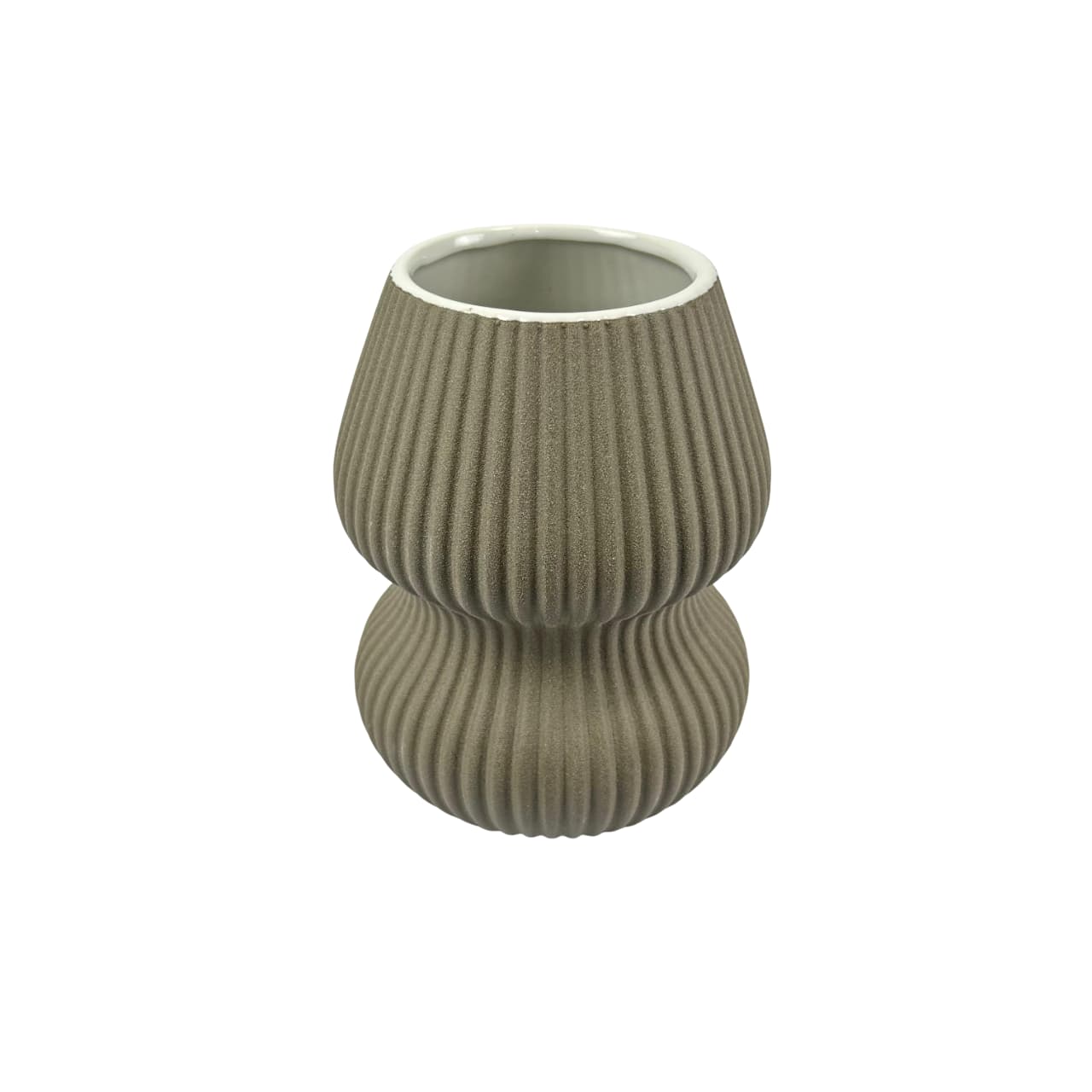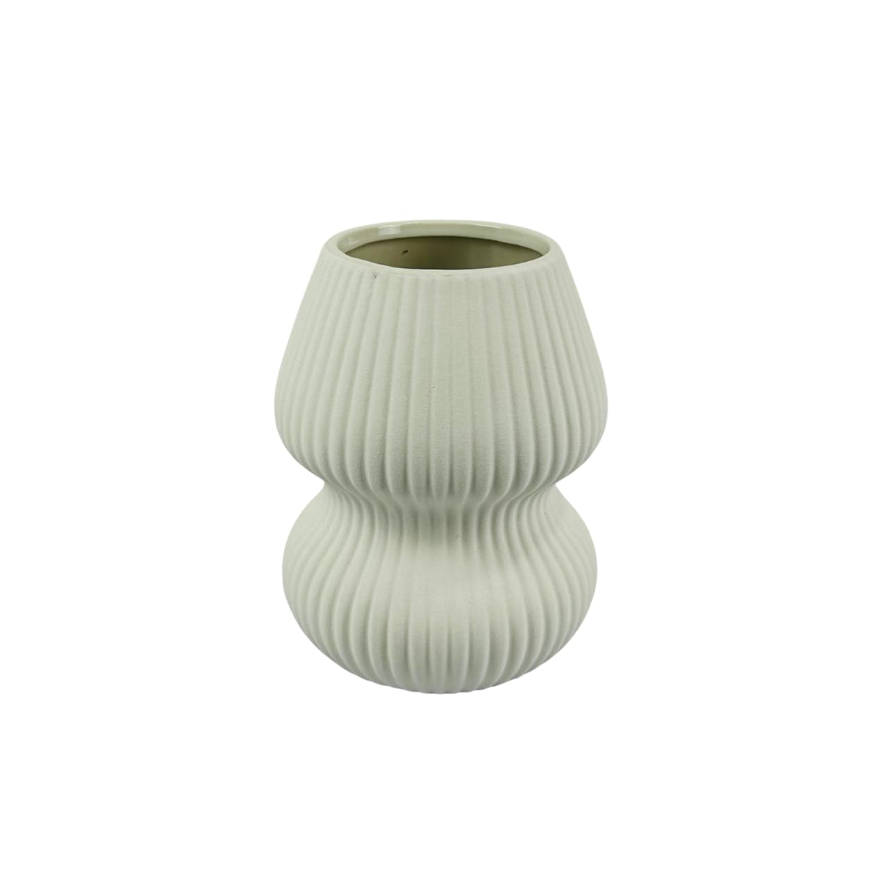 Este florero de cerámica cilíndrico con textura de líneas verticales es una pieza decorativa ideal para quienes buscan estilo moderno con un toque elegante. Su diseño sobrio y versátil se adapta perfectamente a diferentes estilos de interiores, desde nórdico hasta contemporáneo.
