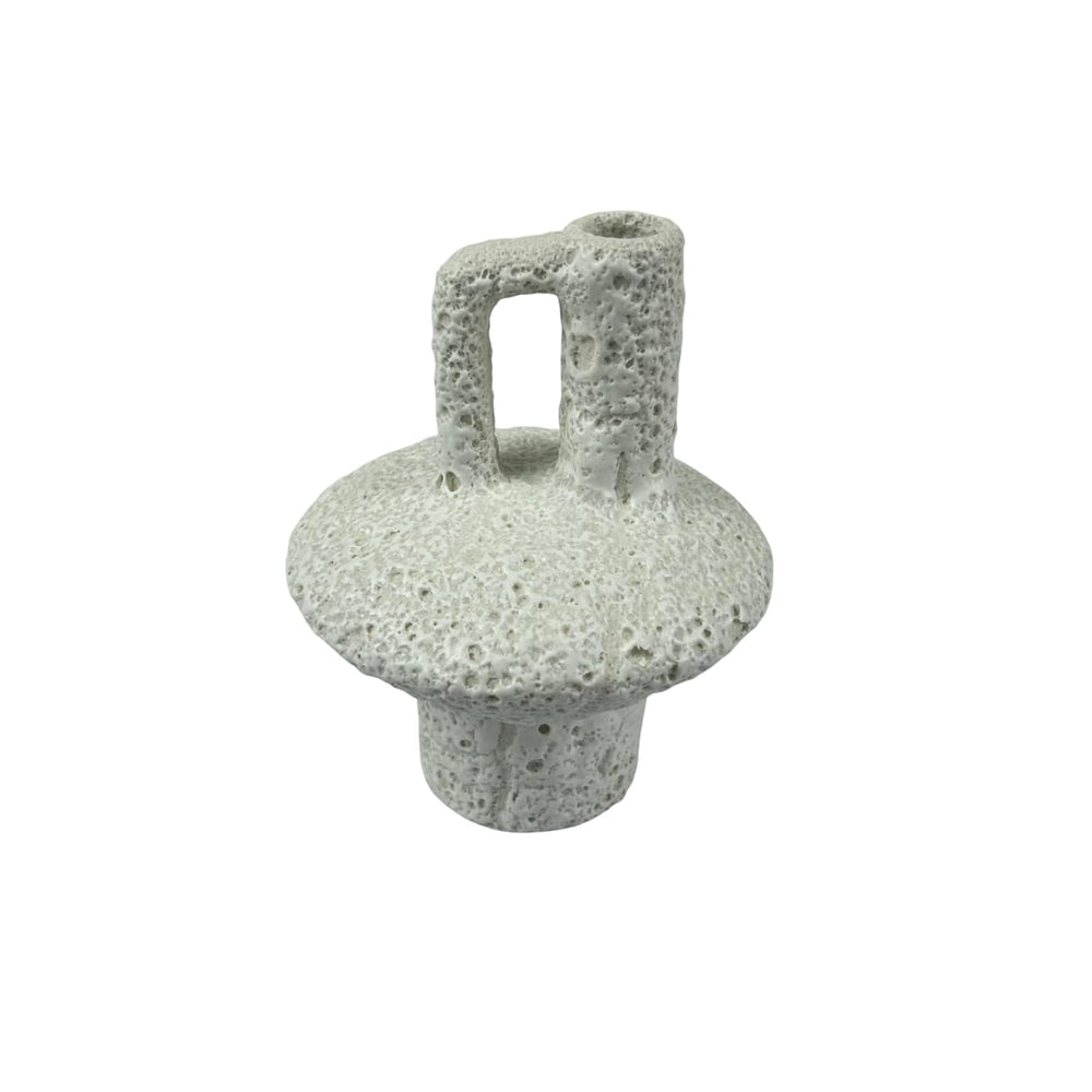 Florero De Cerámica Rustico Con Asa Escultórica Circular 20x13cm