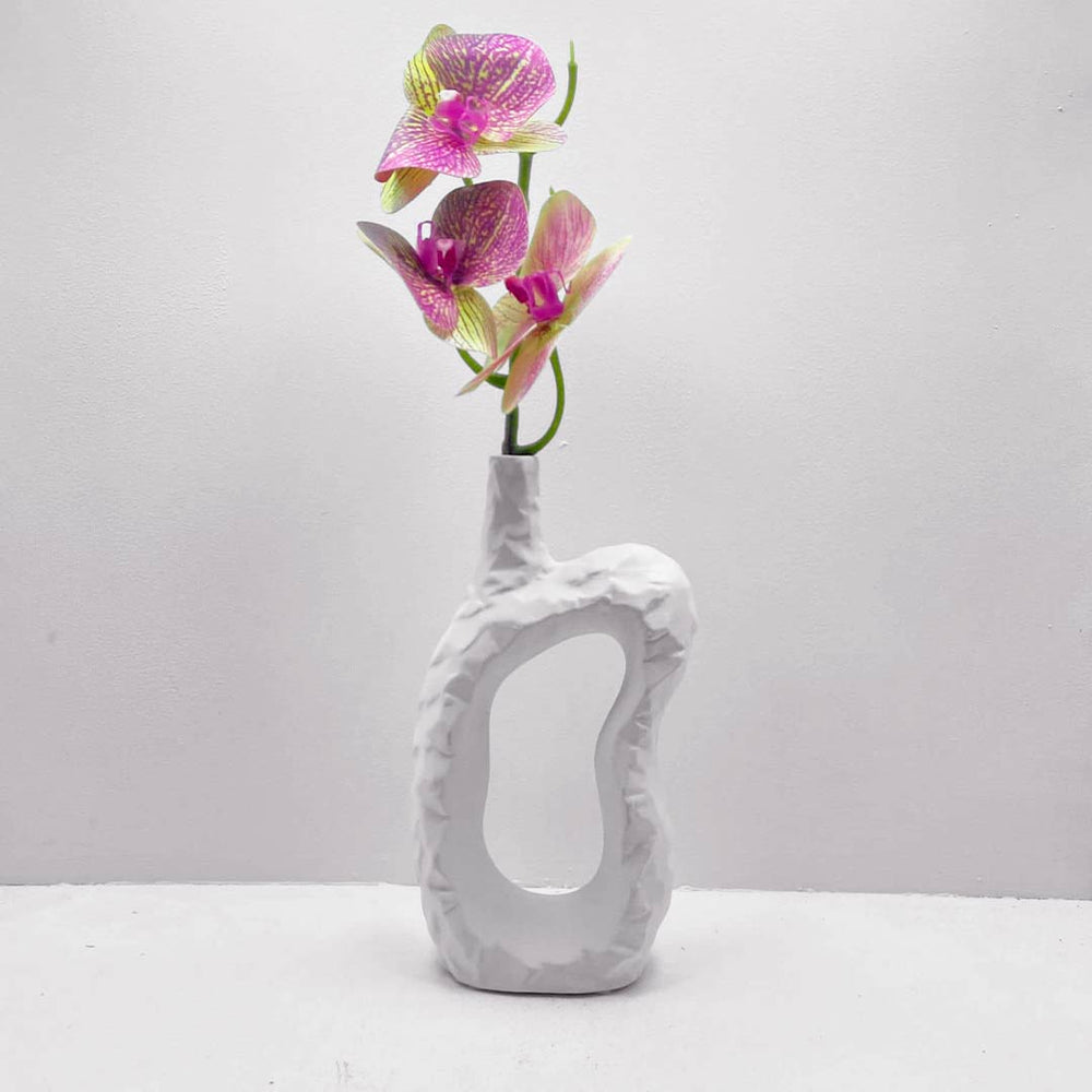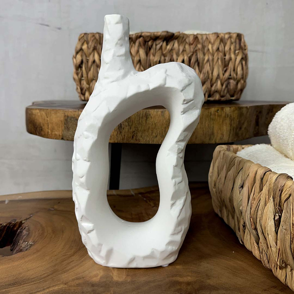 Es la elección ideal para quienes buscan una pieza decorativa que aporte calidez y autenticidad a su hogar. Su acabado rústico y su estructura sencilla lo convierten en un elemento único, perfecto para agregar un toque de estilo natural a cualquier ambiente. Fabricado en cerámica de alta calidad, este florero es durable y tiene un acabado que resalta la belleza de su diseño. El color blanco lo hace fácil de combinar con diferentes estilos decorativos, creando armonía y elegancia en tu espacio.