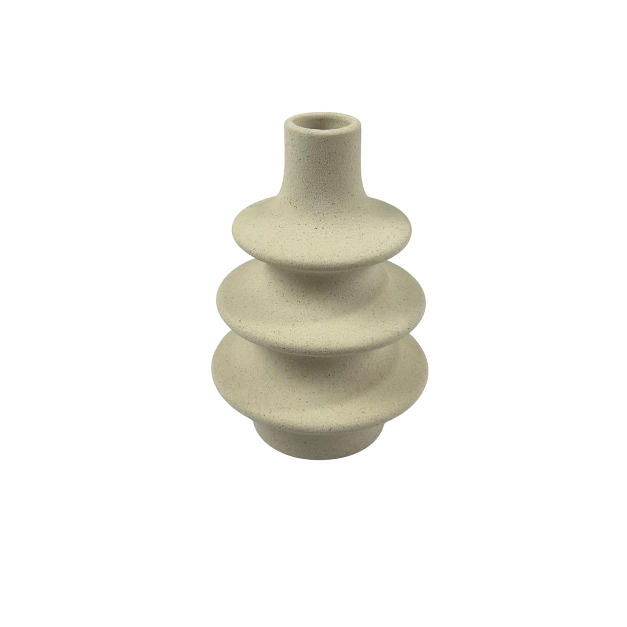 Este florero de cerámica con diseño escalonado es una pieza decorativa única que destaca por su forma moderna y texturizada. Su acabado blanco con efecto moteado aporta un estilo sofisticado y natural, ideal para interiores contemporáneos, minimalistas o escandinavos.