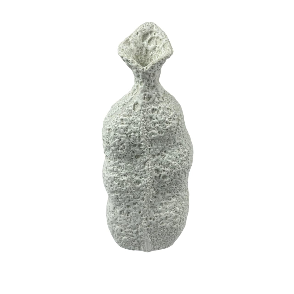 Este florero de cerámica rústico destaca por su forma escultórica y su superficie texturizada, ideal para agregar un toque artístico a cualquier espacio. Disponible en dos tamaños, se adapta tanto a repisas pequeñas como a centros de mesa más amplios.