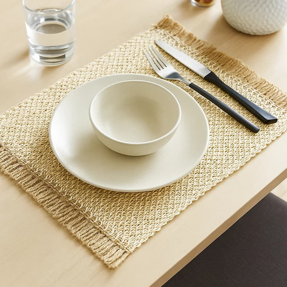 Aporta un toque cálido y natural a tu mesa con el individual rectangular en mimbre natural de 30×45 cm. Su diseño artesanal con flecos decorativos y textura tejida en color marrón crea una atmósfera acogedora, ideal para espacios con estilo rústico, boho o natural.