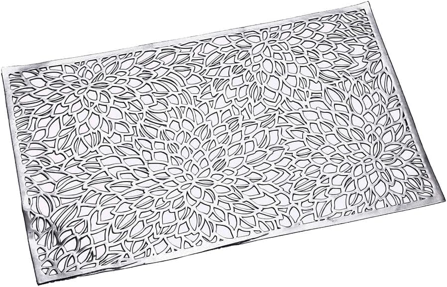 Decora y protege tu mesa con el individual rectangular en PVC 30x45 cm diseño hojas con borde. Su diseño calado con patrón de hojas y acabado con borde definido lo convierte en una pieza elegante y versátil que realza cualquier ocasión.