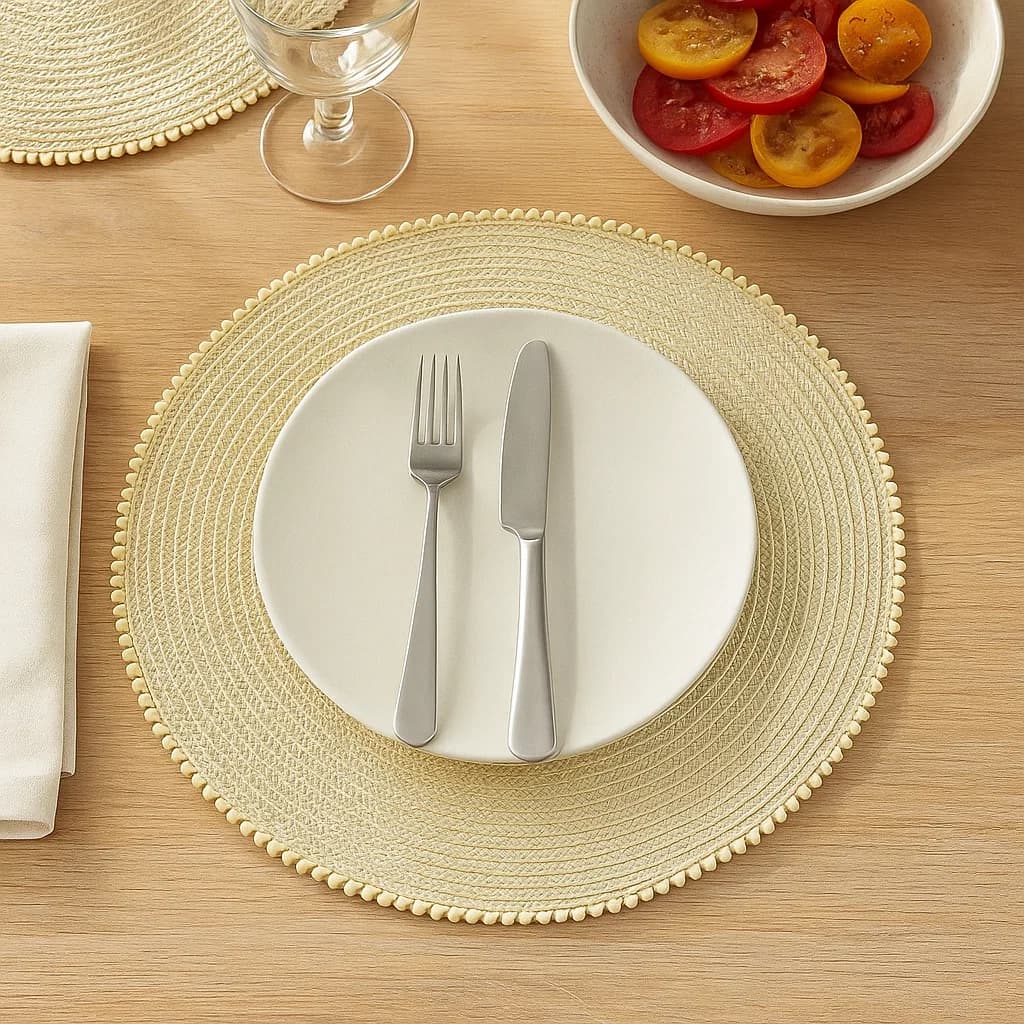 Disponible en cinco variantes de color —rojo, blanco, dorado, plata y marrón—, este individual combina versatilidad y encanto decorativo. Fabricado con fibras sintéticas que imitan el mimbre natural, garantiza durabilidad, fácil limpieza y un aspecto sofisticado.