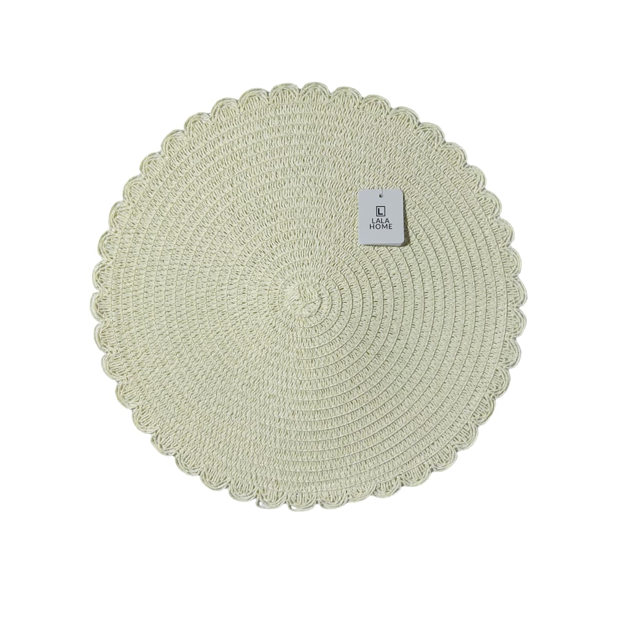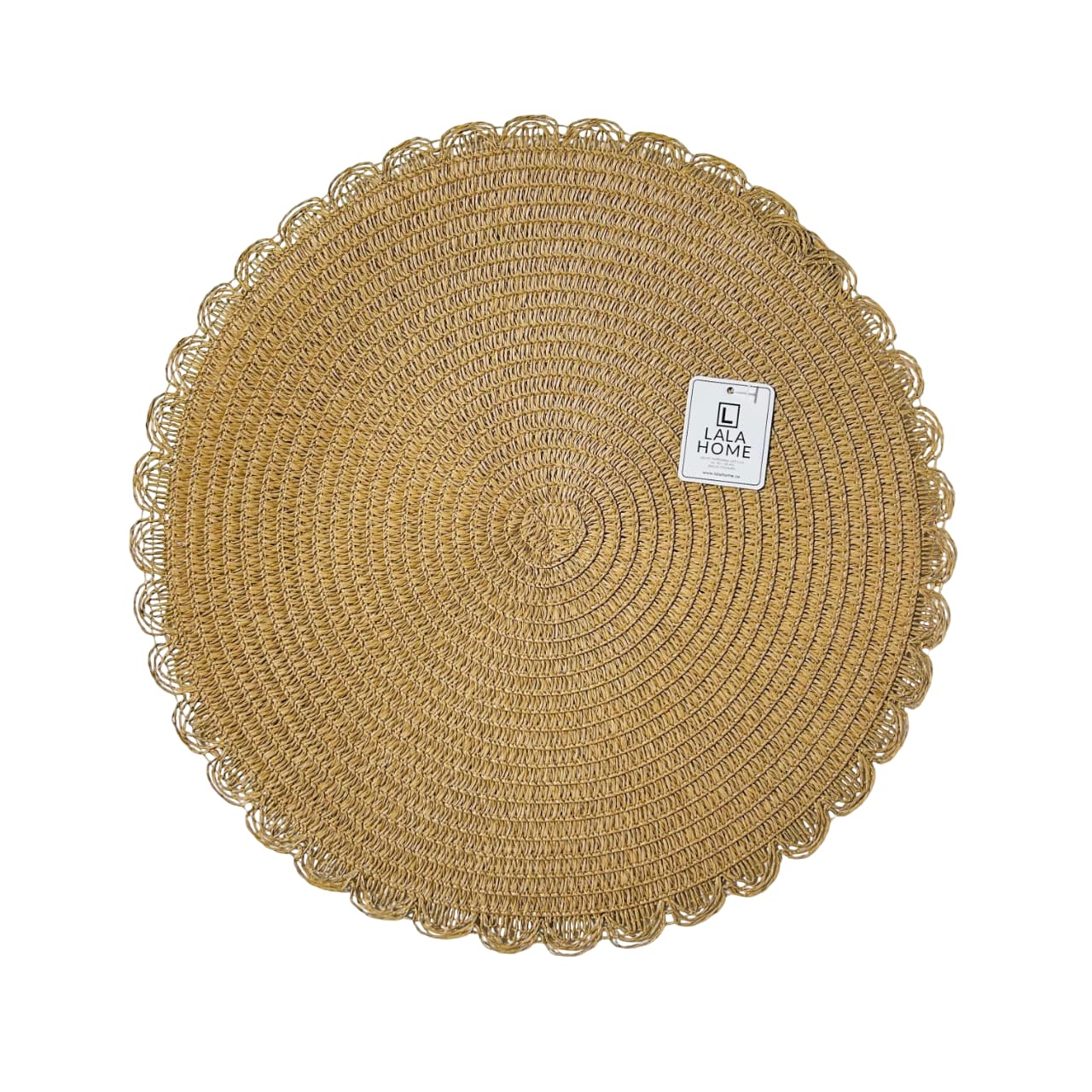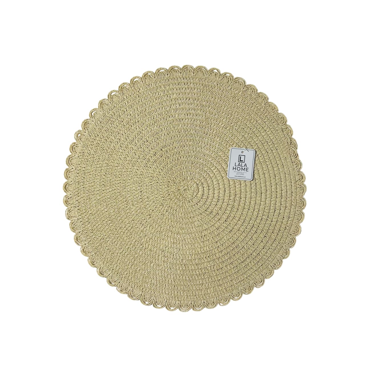 Dale un toque cálido y artesanal a tu mesa con este individual redondo de mimbre de 38 cm de diámetro. Su diseño tejido con borde ondulado combina funcionalidad y estética natural para realzar cualquier ocasión.