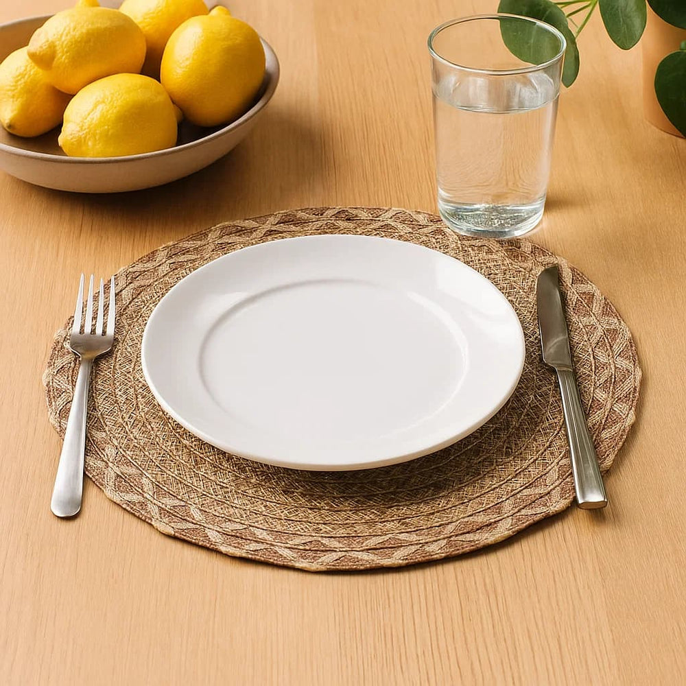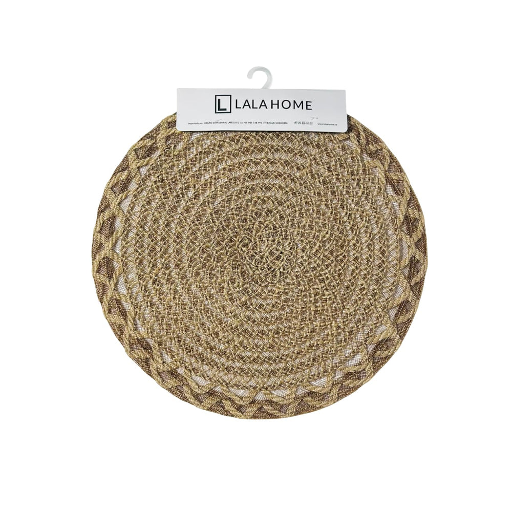 Individual Redondo En Yute 38cm Diseño Tejido Zig Zag
