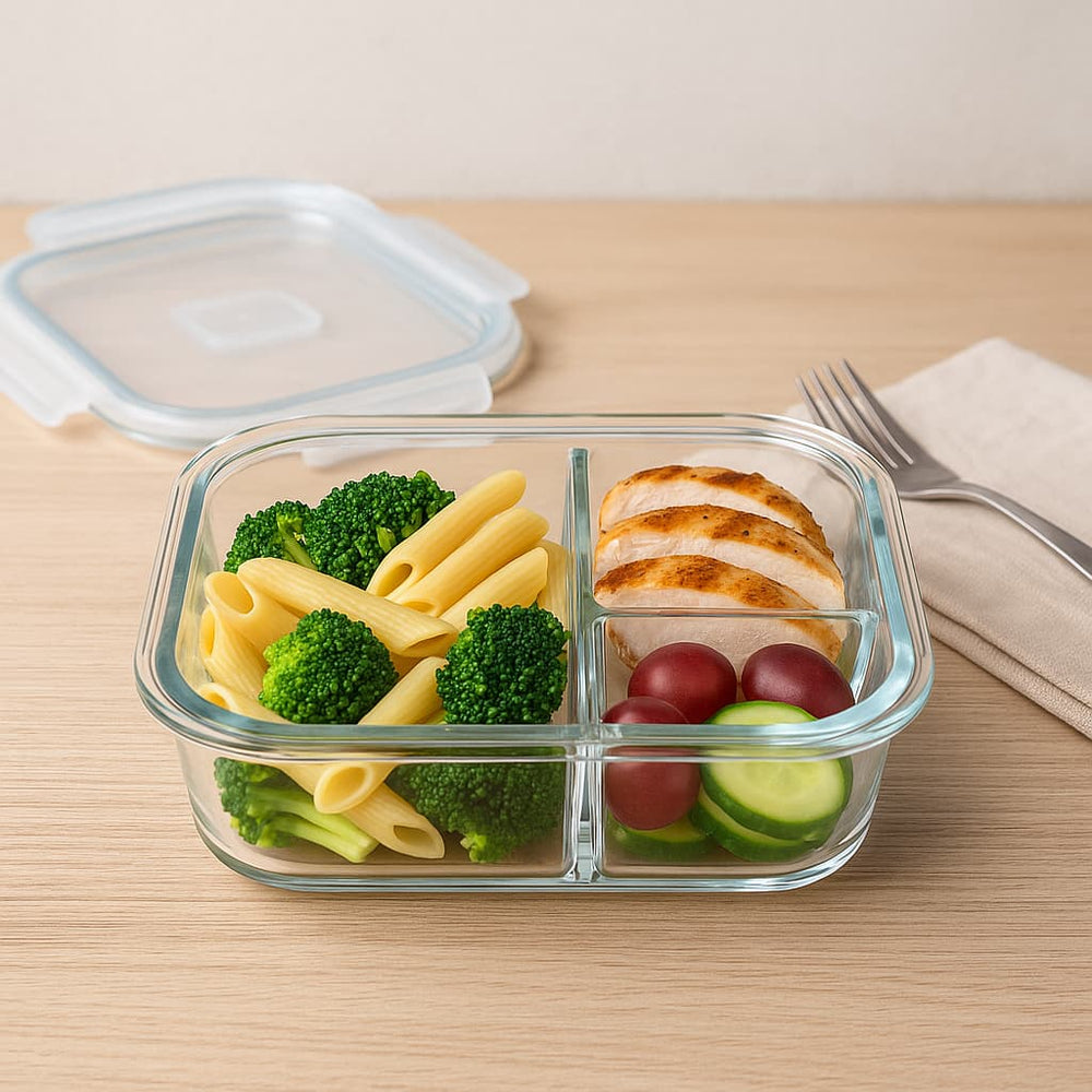 ¡Disfruta de comidas frescas y bien organizadas con esta funcional lonchera de vidrio!