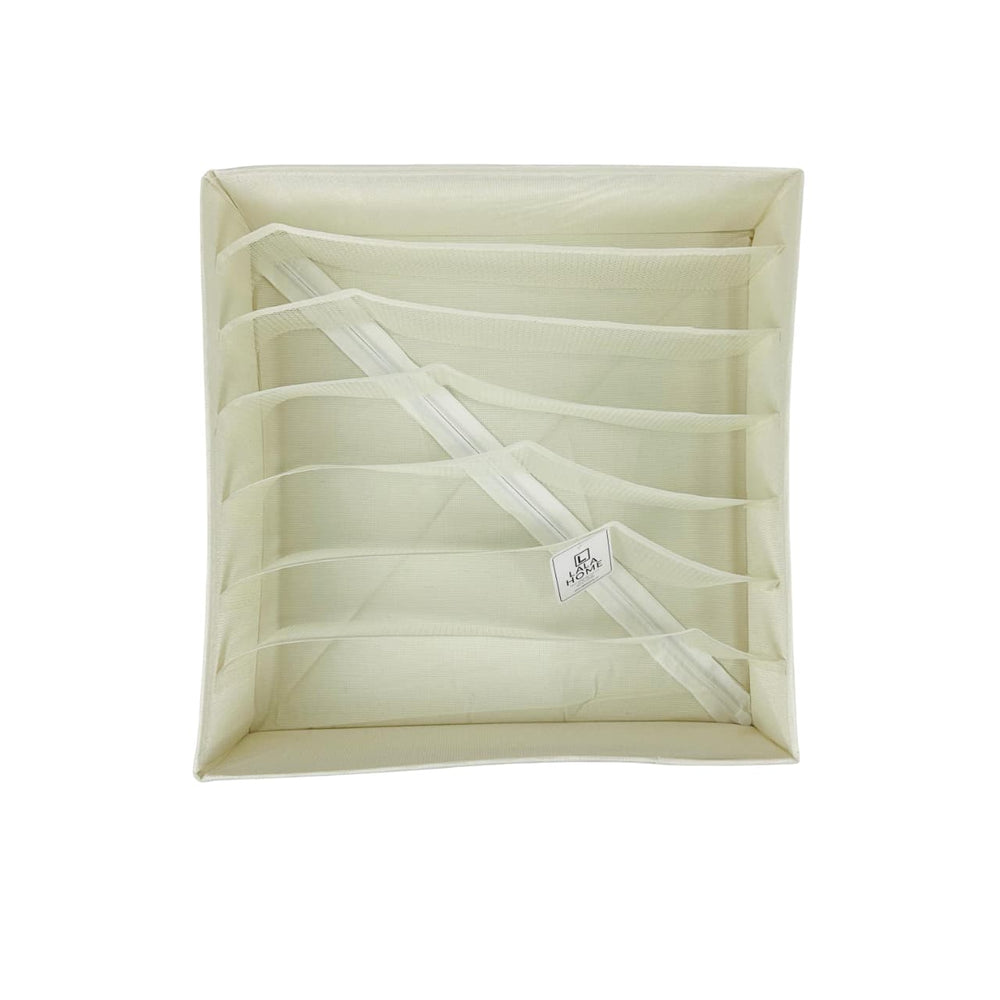 Organiza tu ropa interior, calcetines o accesorios con este organizador de tela con divisiones. Hecho de algodón y lino, combina funcionalidad con un diseño estético y minimalista.