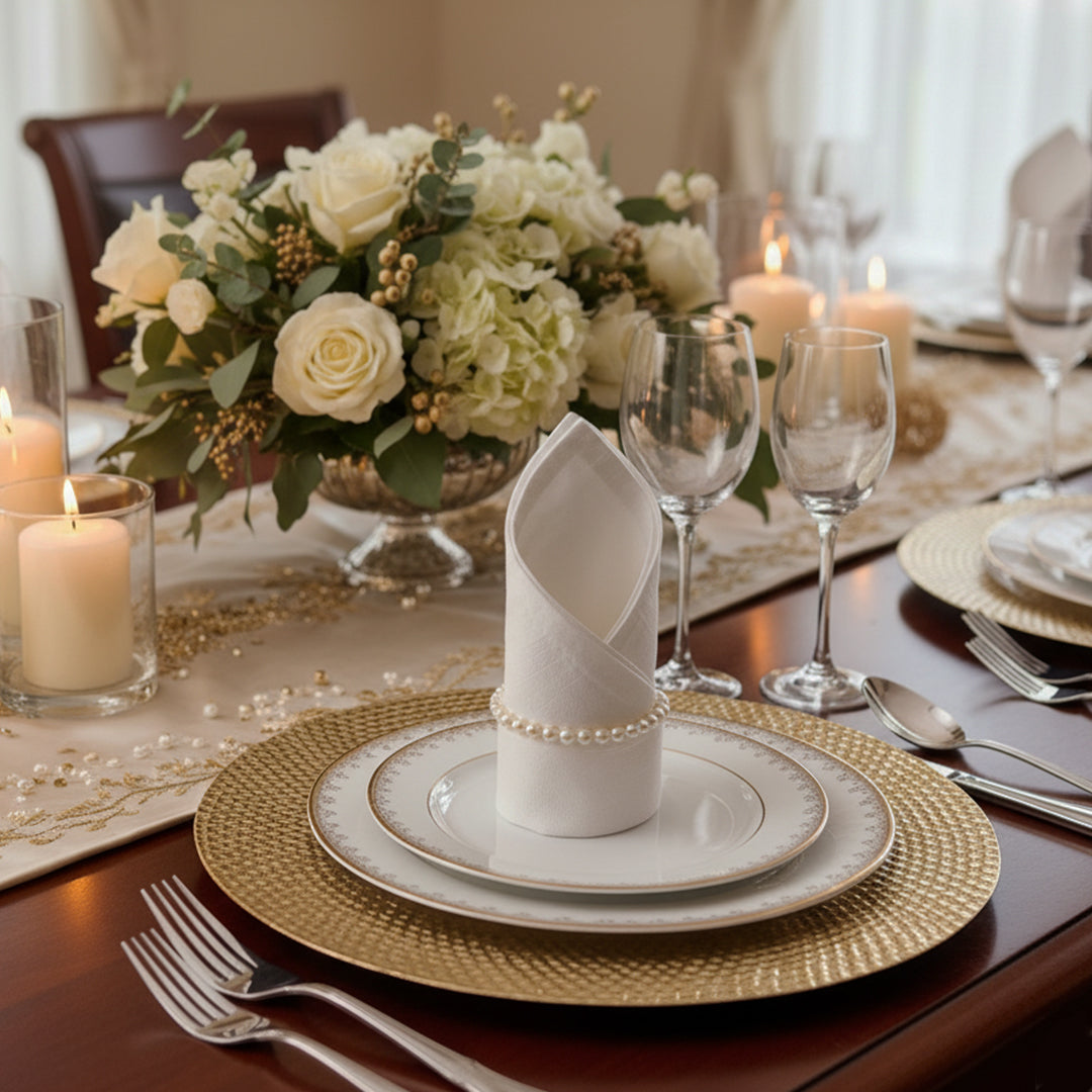 Perfecto para cenas elegantes, celebraciones, eventos o como decoración de mesa diaria. Este plato base realza cualquier vajilla y protege tu mantel con estilo.