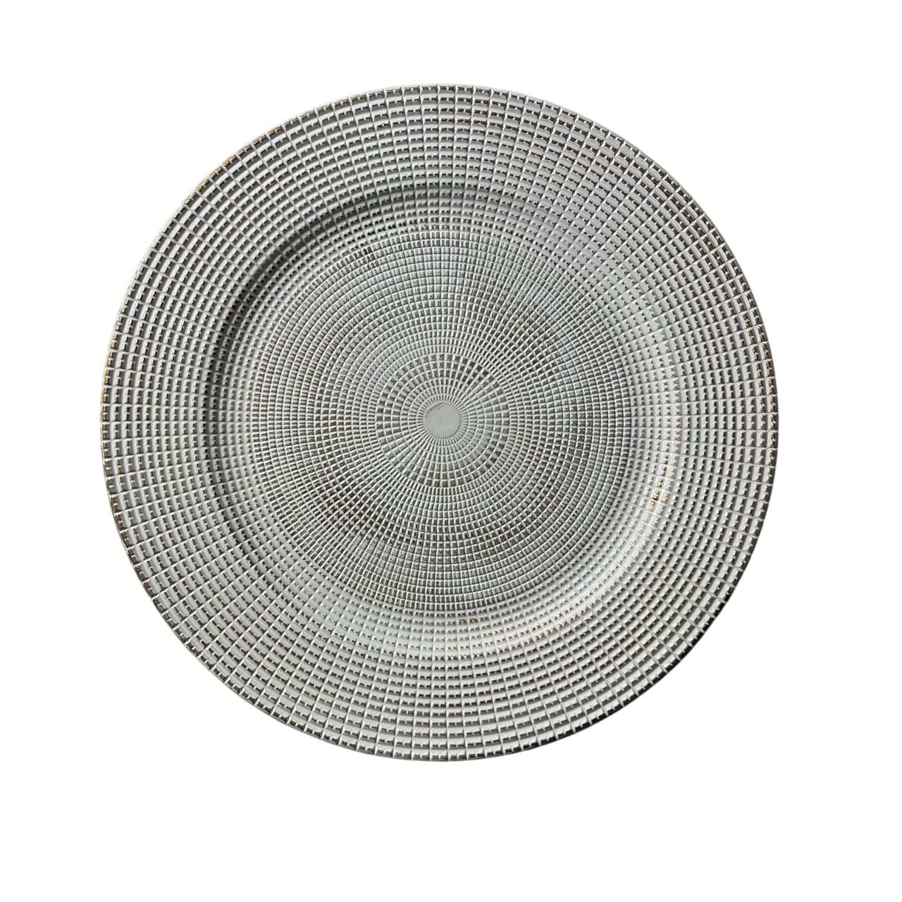 Transforma tu mesa con el plato base de 32 cm con diseño geométrico texturizado en dorado. Su patrón repetitivo con relieve y acabado blanco dorado crea un efecto visual elegante y moderno, ideal para destacar cualquier vajilla.