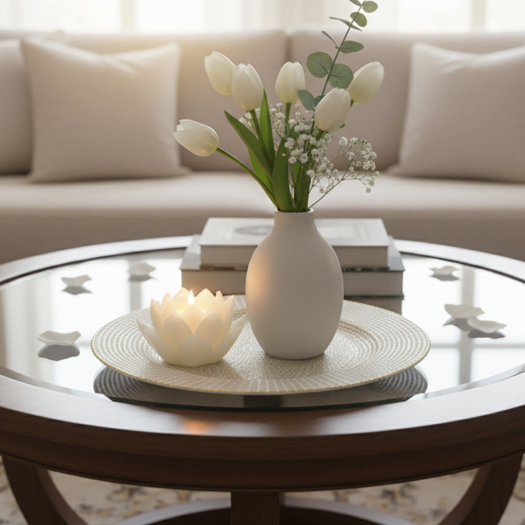 Perfecto para celebraciones especiales, eventos formales o decoración diaria, este plato base aporta sofisticación sin esfuerzo y se adapta a una amplia variedad de estilos decorativos.