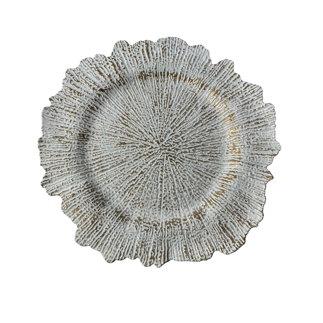 Decora tu mesa con un toque artístico y natural gracias al plato base de 32 cm con diseño texturizado y borde irregular en dorado. Inspirado en formas orgánicas, su acabado con textura en relieve y efecto craquelado lo convierte en una pieza decorativa excepcional.