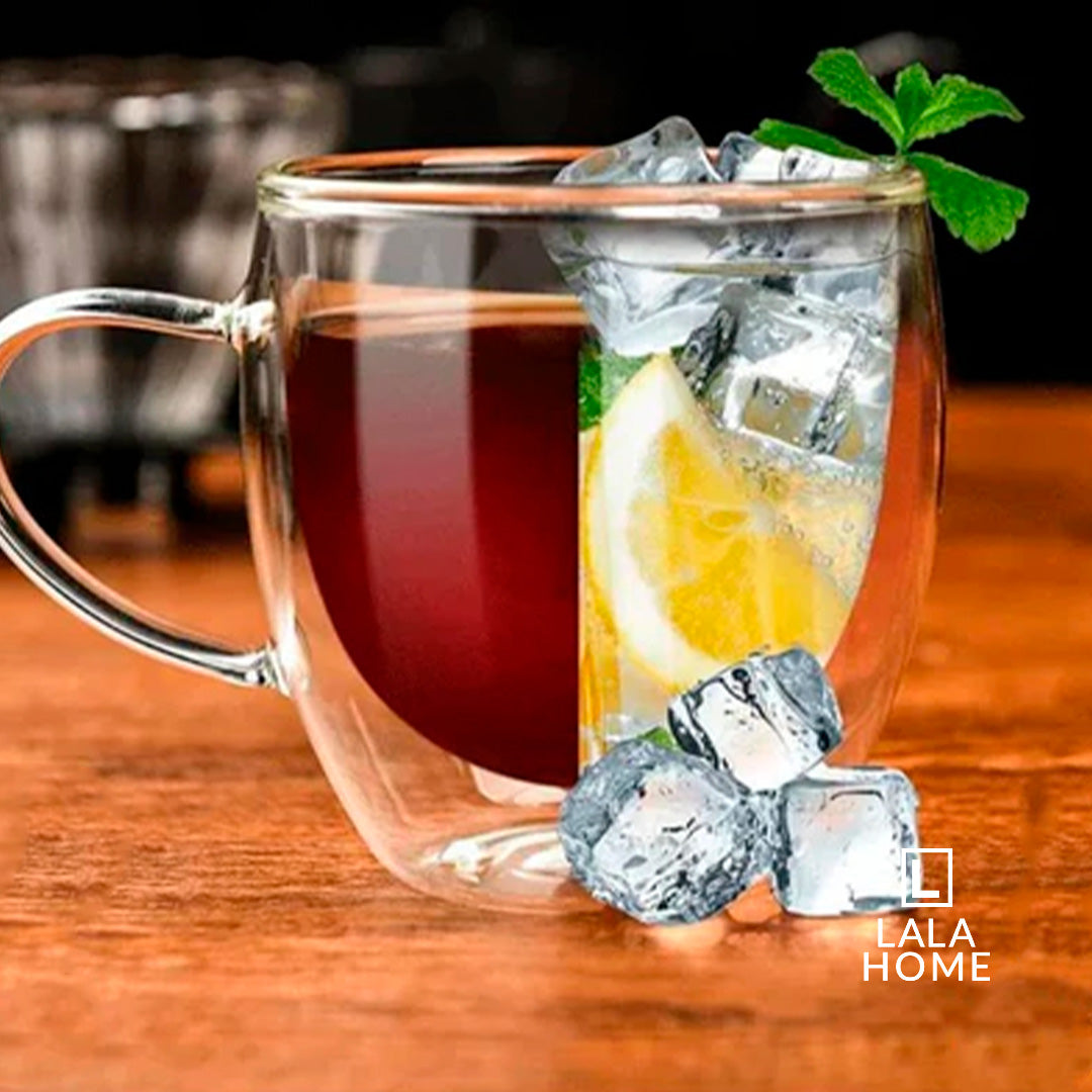 Disfruta tus bebidas calientes o frías con el pocillo doble pared con oreja 150 ml, diseñado para mantener la temperatura por más tiempo y evitar quemaduras al tacto. Su diseño transparente y elegante lo convierte en una opción ideal para servir café, té o postres de forma moderna y funcional.