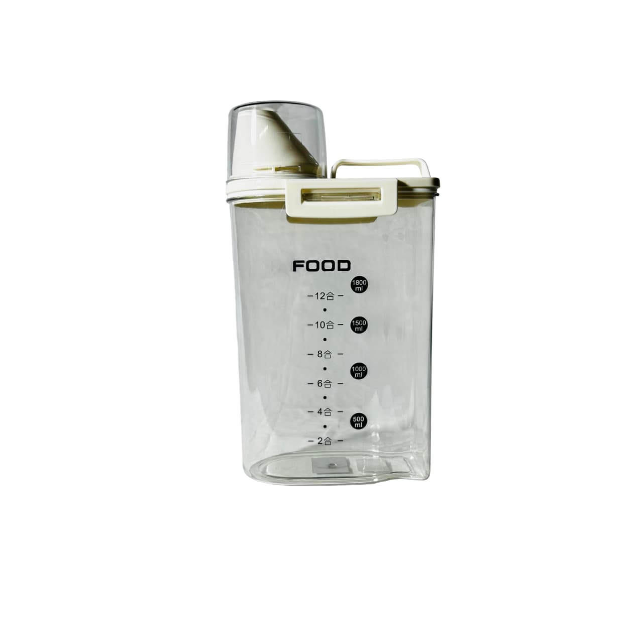 Organiza tu cocina con el recipiente multifuncional de 1.8 L en color beige. Diseñado para almacenar y dosificar alimentos secos como cereales, arroz, pastas, semillas o harinas, este contenedor cuenta con una tapa hermética abatible y boquilla dosificadora que permite verter fácilmente el contenido sin derrames.