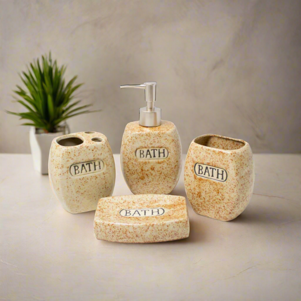 Combina estilo y funcionalidad. Este conjunto incluye los esenciales perfectos para organizar y embellecer tu espacio: un dispensador elegante, un vaso multiusos, un porta cepillos y una jabonera, todos diseñados con detalles modernos y acabados que inspiran frescura y armonía. Ideal para cualquier decoración, este set no solo aporta practicidad, sino que también transforma tu baño en un rincón acogedor y con personalidad.