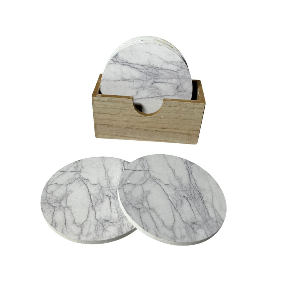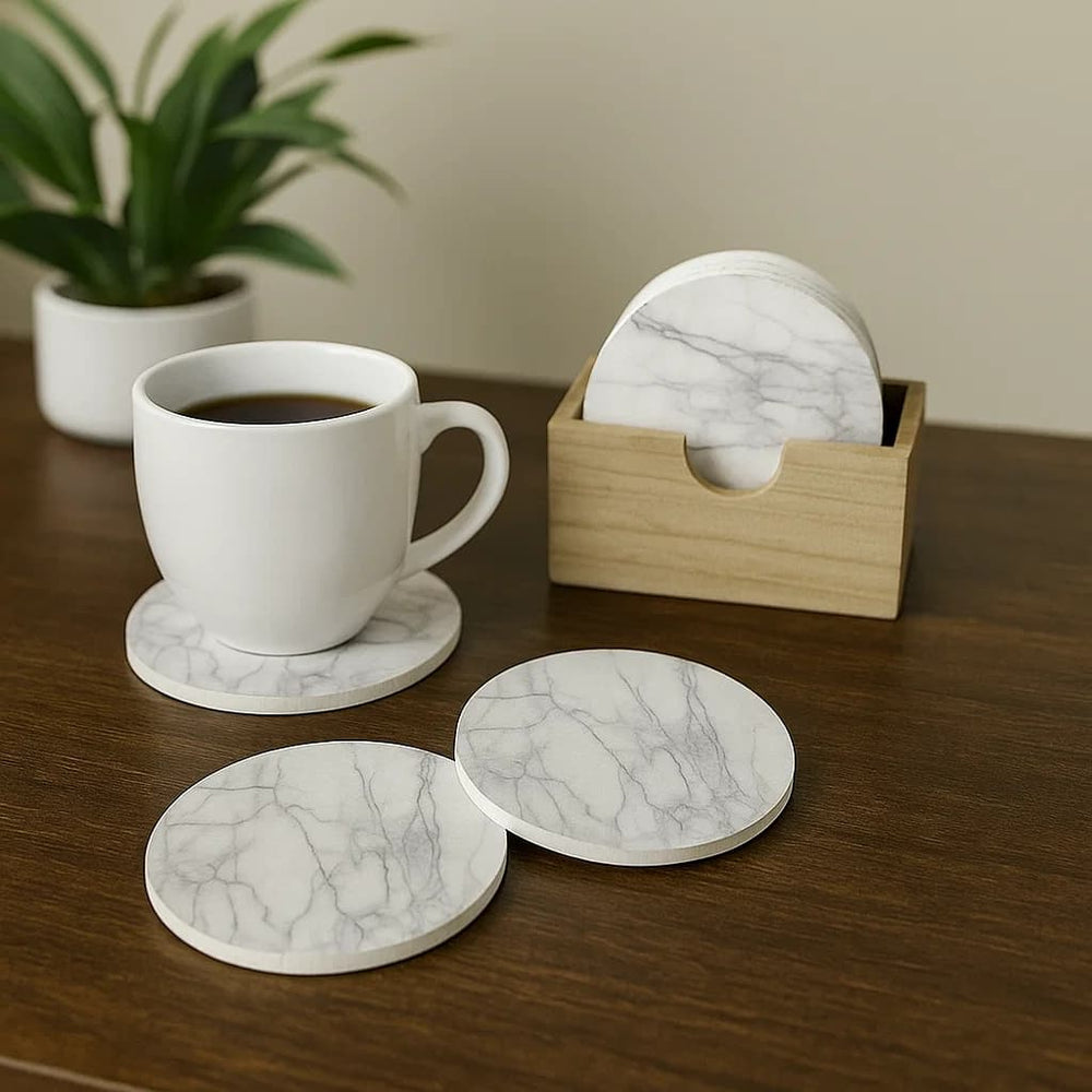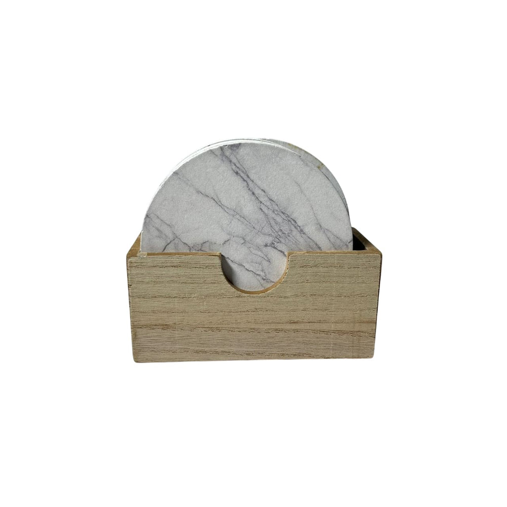 Set De Portavasos Redondos Con Soporte Diseño Mármol