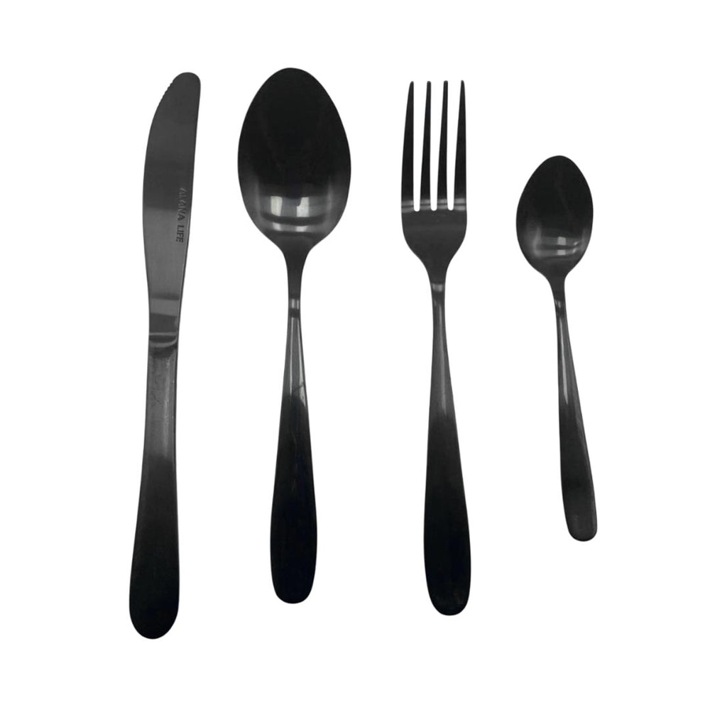 Renueva tu mesa con el sofisticado Set de Cubiertos Doha Negro. Fabricados en acero inoxidable de alta calidad, estos cubiertos destacan por su diseño moderno y elegante. Perfectos para complementar tus comidas con estilo y funcionalidad. ¡Hazlos parte de tu hogar hoy!