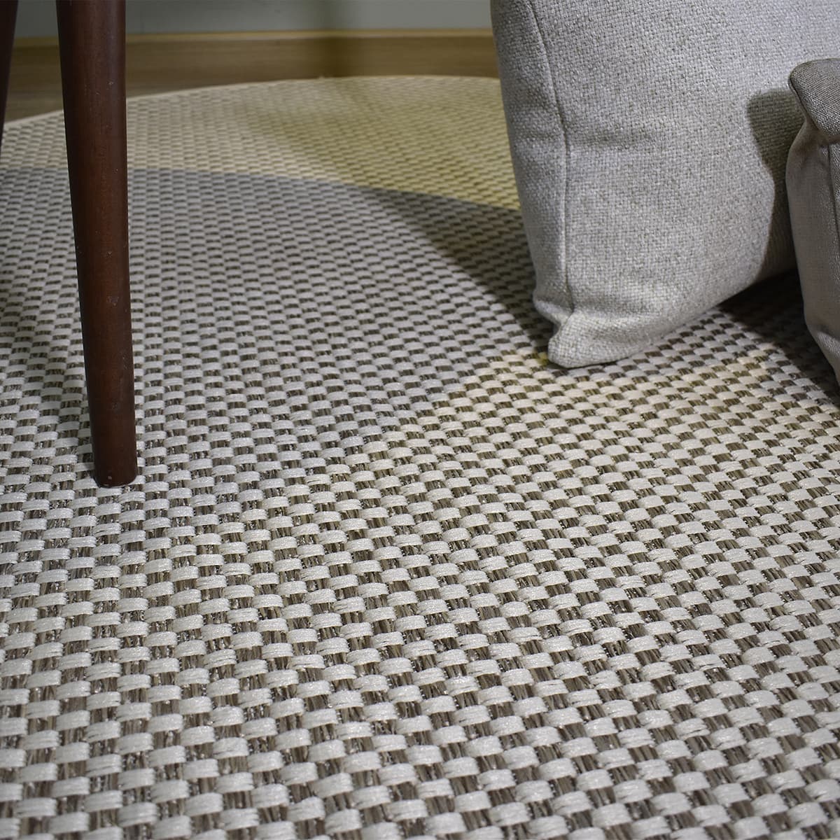 El tapete redondo Condesa 03 en tono natural destaca por su diseño texturizado tipo tejido, ideal para crear un ambiente cálido y moderno. Su patrón uniforme lo hace perfecto para salas, habitaciones o cualquier espacio que requiera un detalle decorativo sutil y elegante.